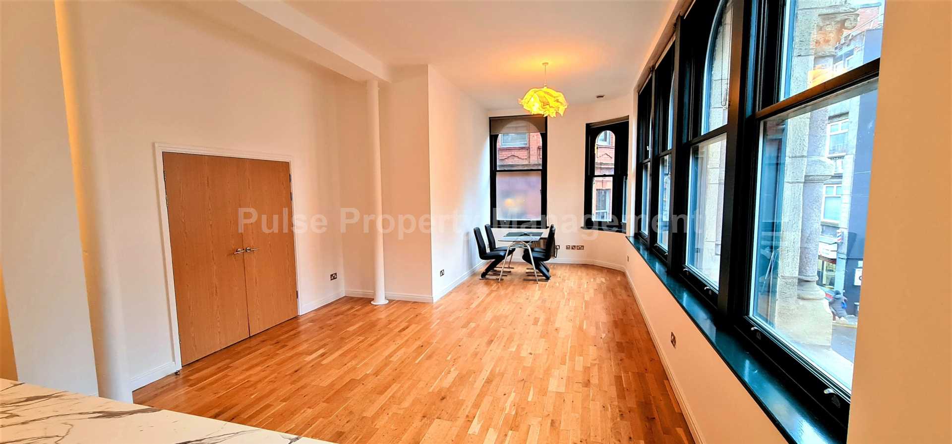 Surrounded by a plethora of trendy bars, restaurants, boutiques and art galleries this exclusive apartment features two double bedroom, one luxury bathroom, one en-suite and fully integrated kitchen of high specification. The apartment also boasts original features throughout with classic sash windows over looking Thomas Street. The apartment is offered unfurnished. Furniture pack is available.